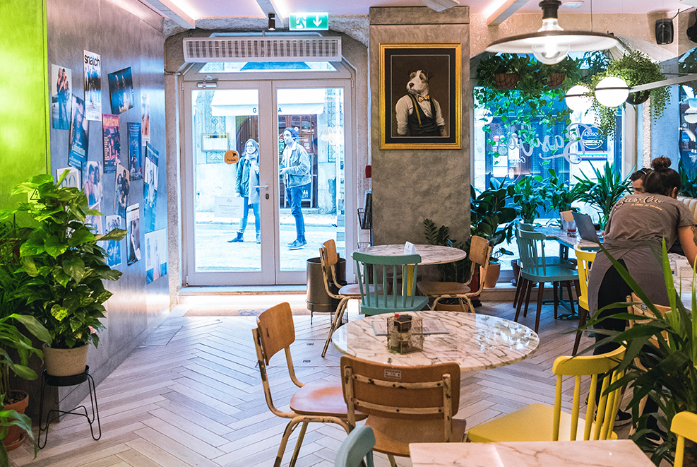 Just a short walk away, going towards the Tejo river you’ll find Basilio (Nicolau’s cousin) Café. Cozy interiors, colourful design and all-day food. The menu includes poke bowls, toasts, eggs, burgers, pancakes and more. A wonderful spot for brunch, a quick coffee or an afternoon smoothie.