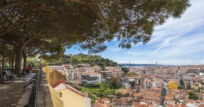 The viewpoint develops in front of the Chapel of Nossa Senhora do Monte. From there you can see, to the south, the Palha Sea, São Jorge Castle, part of the Baixa de Lisboa