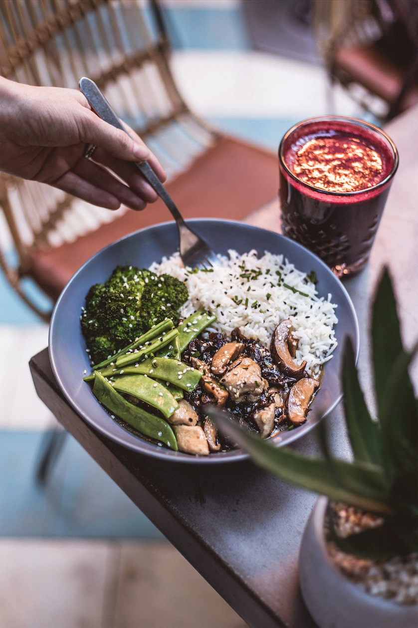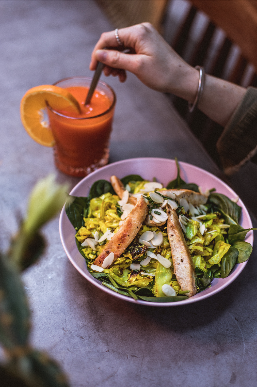 For the health nut: Chickpea salad with spinach, pink hummus and avocado.